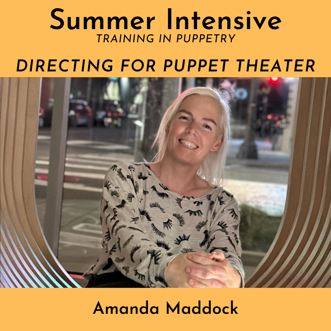 Amanda Maddock is a puppet artist in theater, television, and film. She loves to find ways to satisfy her passion for creating through building, designing, wrangling, and performing. In 2024 she presented an in-development presentation in Los Angeles of her new show 0per8r(s), and also taught a workshop with Tim Lagasse through the LA Guild of Puppetry about how to create short form shows for puppet slams.